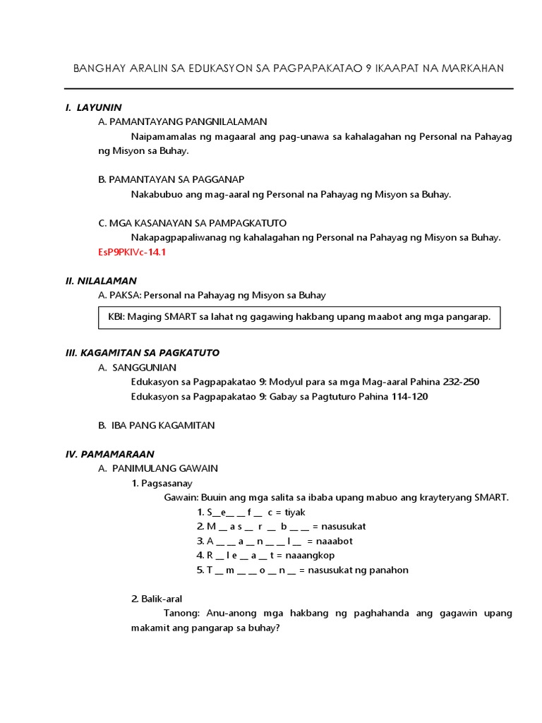 Es P 9 Modyul 14 Personal Na Pahayag Ng Misyon Sa Buhay