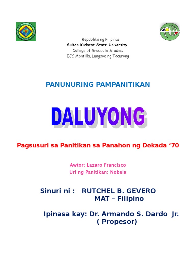 Panitikan Sa Panahon Ng Dekada 70 Daluyong Doc