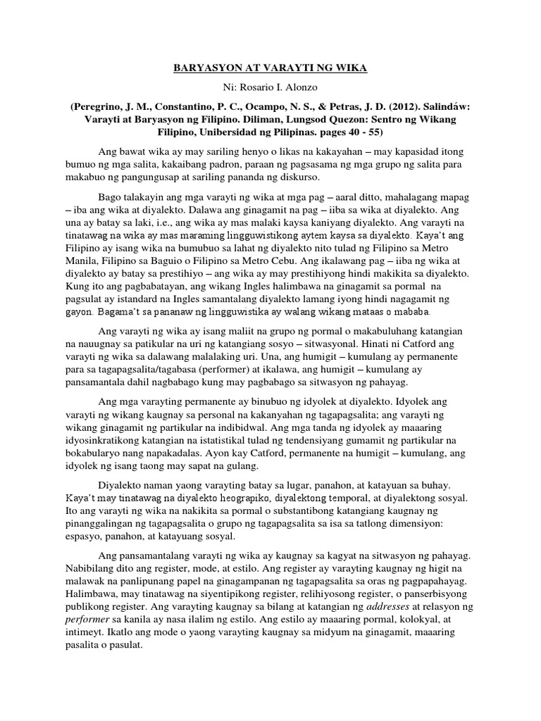 Barayti At Baryasyon Ng Wika Pdf Barayti At Baryasyon Ng Wika Barayti Tumutukoy Sa Pagkakaroon Ng Pagkakaiba Iba Sa Wika Ang Pagkakaroon Ng Pagkakaiba Course Hero