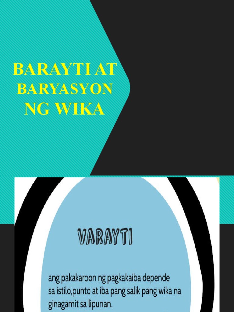 Kahalagahan at kahulugan ng barayti ng wika ang lahat ng wika sa daigdig ay may kaniya kaniyang barayti ang pagkakaroon ng. VARAYTI AT VARYASYON NG WIKA Varayti ang pagkakaroon nito ay bunga ng paniniwala ng mga linggwista na ang wika ay heterogeneous o nagkakaiba-iba. BARAYTI NG WIKA Ang Register ay isang baryasyon sa wika na may kaugnayan sa taong nagsasalita o gumagamit ng wika.