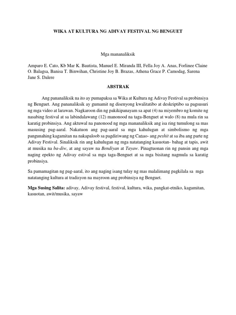 Wika At Kultura Ng Adivay Festival Ng Benguet Docx