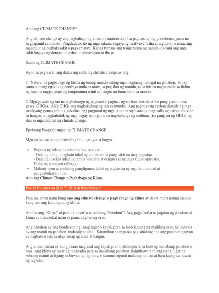 Essay On Pagbabago Ng Klima 8141 Words Studymode