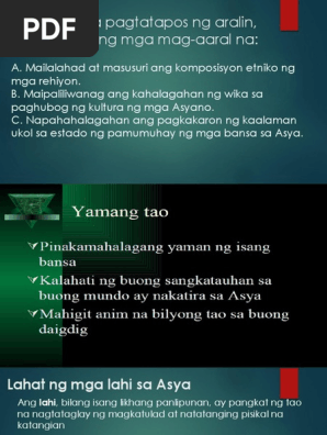 Ang Katangian at Kahalagahan Ng Yamang Tao Ng - Free download as Powerpoint Presentation ppt PDF File pdf Text File txt or view presentation slides online. AP7HAS-Ij-110 Handa ka na bang tumuklas ng mga bagong kaalaman. Ako at ang aking pamliya gawain 1 4.
