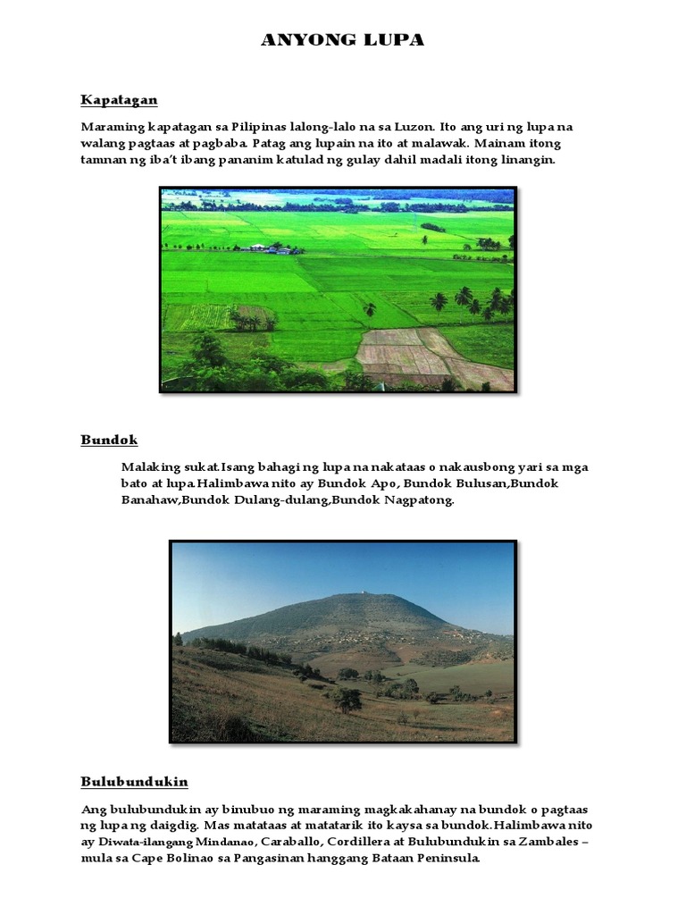 Mga Anyong Lupa At Tubig Sa Pilipinas