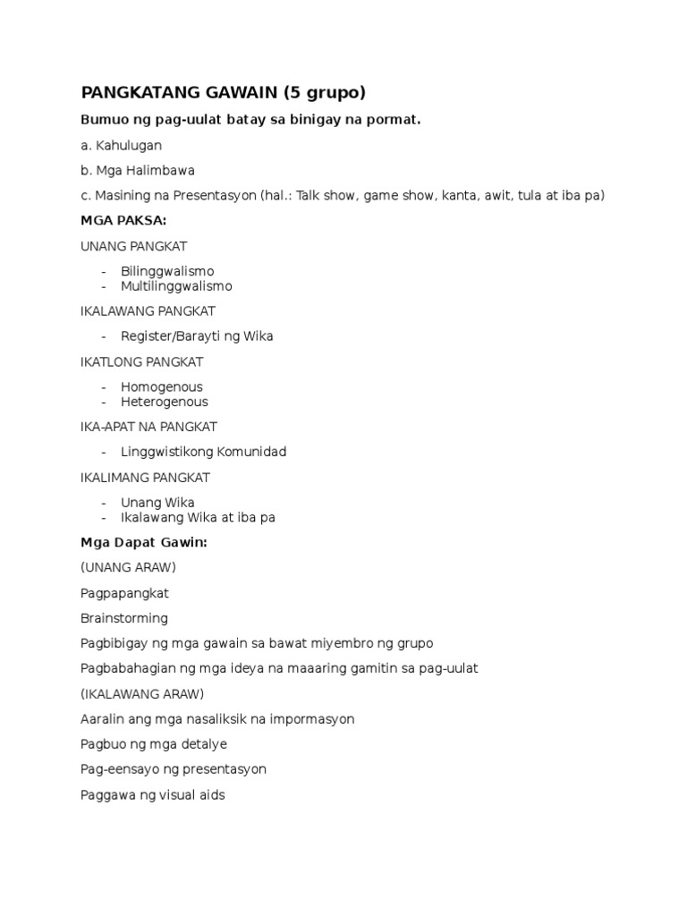 Dito rin makikita ang mga mahahalagang puntos na tinalakay sa akda. Ang multilinggwalismo ay ang tawag sa pakikipag-ugnayan ng tao gamit ang dalawa o higit pang bilang ng wika pasulat o pasalita man. TEKSTONG NARATIBO Sa paksang ito ating tatalakayin kung ano nga ba ang tekstong naratibo at ang mga halimbawa nito.