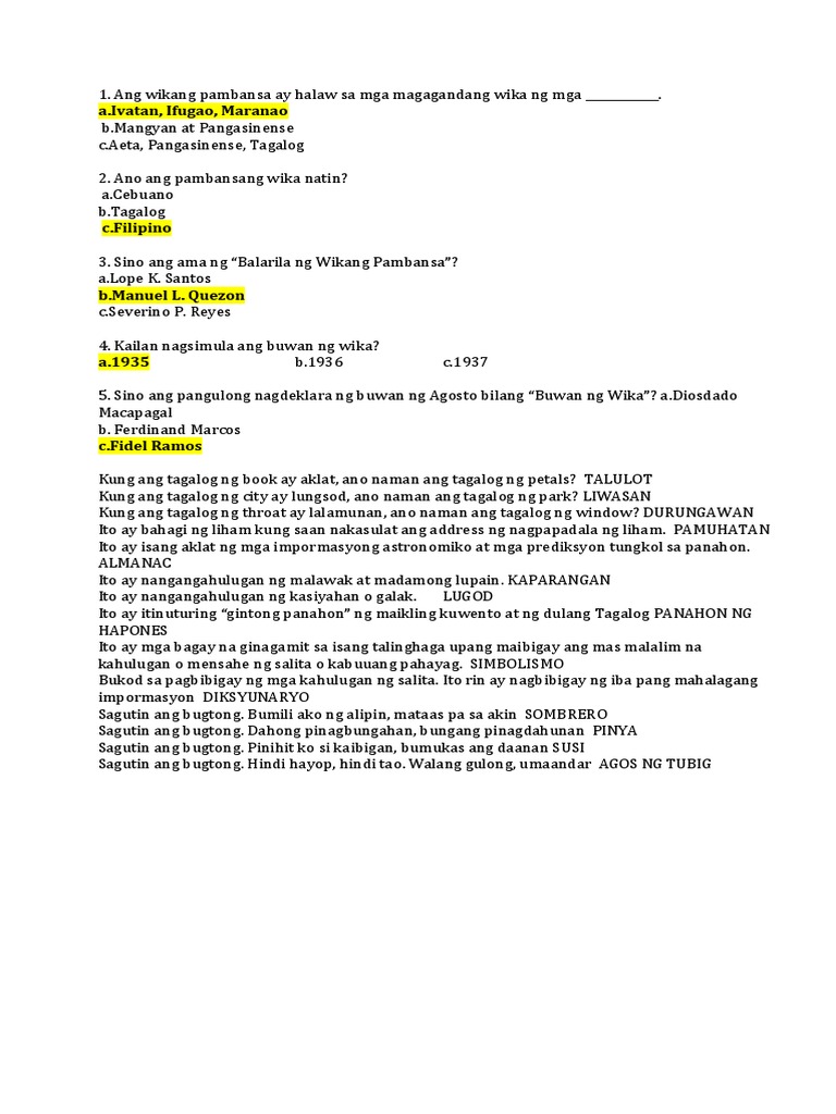 Mga Halimbawa ng mga Matatalinhagang Filipino Salita 1.