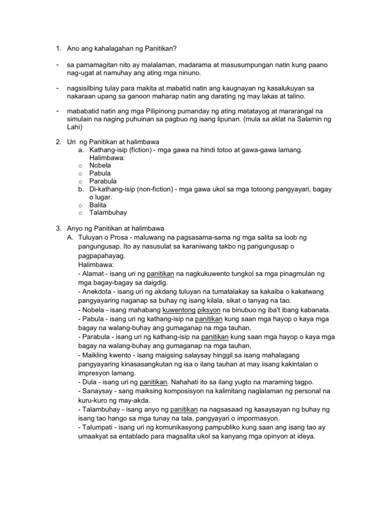 Panitikan kahulugan uri anyo at kahalagahan. Malaki ang kontribusiyon ng Panitikan sa Kasaysayan sapagkat dito natin makikita kung ano ang buhay ng mga tao noon. Ang panitikan ay tinutukoy sa lahat ng uri ng pahayag nakasulat man o binibigkas ayon sa isang handout na naupload sa Scribd.
